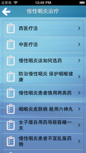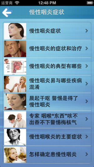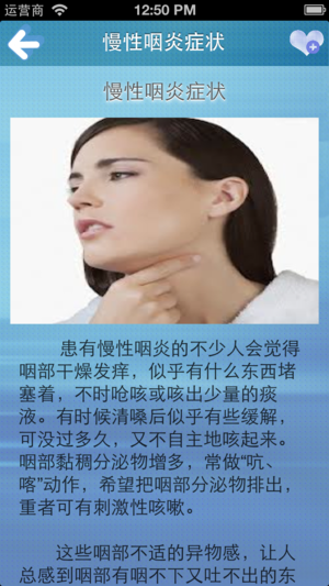 无广告,不耗流量,不用联网也可以使用 慢性咽炎是耳鼻咽喉-头颈外科中最常见的一种良性疾病,且发病率正在增加。该软件介绍慢性咽炎的一般知识、发病情况、病因、症状、诊断与鉴别治疗以及预防保健等内容,对该疾病进行系统介绍,使慢性咽炎得到正确认识和合理治疗。