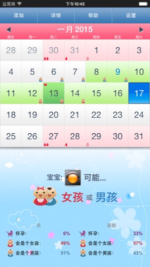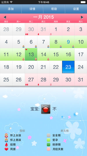 "月经期助手" 是真实科学成果的结晶!它可以帮助您确定每月的受孕期,您可以此积极怀孕或避免怀孕。