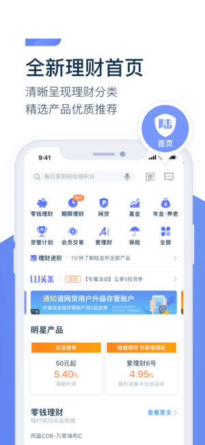 欢迎您使用陆金所开启您的投资理财之旅。 陆金所(LU.com)-中国平安集团旗下的一站式财富管理平台。陆金所以健全的风险管控体系为基础,为投资者提供专业、高效、安全的理财服务,打造便捷省心的投资体验。 【安全保障】 -平安集团旗下成员,多年综合金融经验 -委托第三方机构,对用户资金进行第三方存管,重点保护投资者资金安全 -国际化专业团队,完备的风险防控体系,多重防护网防范交易风险 【公司荣誉】 -中国互联网金融协会常务理事单位、上海市互联网金融行业协会副会长单位 -2016年世界经济论坛“全球成长型公司” -毕马威2016全球金融科技百强榜,全球排名第四位 -2016年《亚洲银行家》“年度…