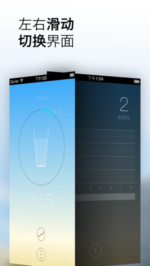 简洁,贴心,科学的喝水提醒,让你爱上喝水。帮你养成每天按时八杯水的健康好习惯。 * 自动按时提醒喝水; * 一周统计,实时跟踪记录帮助养成按时喝水好习惯; * 自动结合时间,变化背景; * 手势交互,简单快捷; * 自定义喝水次数及时间; * 喝水计算器帮你判断每天需要补充多少水。 人体每天需要补充足够的水分,以维持正常的生理机能。有理论研究人体每摄入1卡路里热量的食物,就需要同时补充1mL水分,来平衡身体代谢。根据人所处环境、活动及饮食习惯的不同,通常每天需要补充1.5~2L水,按照作息、饮食等生活规律,每天需要喝8杯水,平均每杯约200mL。 ------- PS: 感谢各位朋友的支…