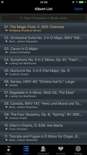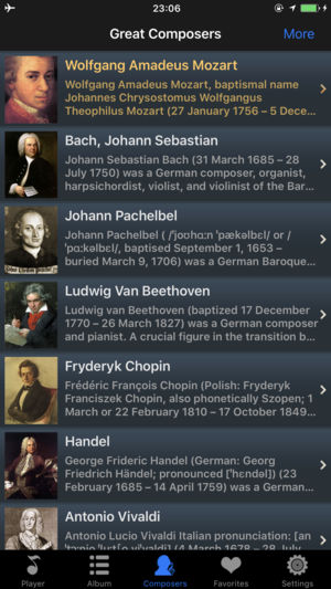 √√带有知识的音乐播放器 您将聆听到47位伟大作曲家创作的99首最经典的古典音乐, 您将看到伟大作曲家们的肖像, 您将阅读伟大作曲家们的介绍. 您将放松心情, 启迪智慧, 开拓思维, 恢复活力! 听一听, 为了您和您的孩子! √√应用特色 -高质量的音乐 -播放顺序: 随机播放或按顺序播放 -重复模式: 单曲重复, 循环播放所有曲目, 循环播放收藏曲目 -音乐列表: 作曲家音乐列表, 收藏音乐列表, 所有音乐列表 -搜索作曲家或曲目 -后台播放 -锁屏或播放时显示作曲家肖像 -锁屏时播放控制(播放/暂停/上一首/下一首) -摇一摇切换音乐 -睡眠定时 -支持iPod, iPhone &…