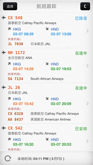迄今为止最All-in-One,最专业的航班应用!在本产品之前,你往往不得不买机场查看类和航班跟踪类2种应用。而现在,在一个应用内,同时提供航班搜索、航线搜索和机场搜索,同时提供多达100个个性定制航班实时状态跟踪,同时实时刷新全球近17,000个机场和逾100,000条飞机航班的时刻表与最新实时状态。可任意指定机场进行同步实时状态追踪,所有航班的航站楼、登机口、延误或取消信息第一时间更新。 充分理解与考虑长期出差与旅行者的需求,舍去华而不实的设计与功能。专业抗疲劳MUJI Style设计风格,最全的国际国内出发到达航班数据,最清晰最完整的单次航班信息内容,不仅让您实时掌握航班进港和出港状态,更保护您在旅途中长时间频繁刷新也不会感觉疲劳。 1)简单明了的航班搜索、航线搜索和机场搜索,1分钟找到你想要找的航班 2)不需要再买第二个应用,就可免费查看国际、国内近17,000个机场和逾100,000条航班数据。 3)可跟踪多达100个航班实时状态,最大面积完整显示单次航班信息(航站楼、登机口、延误或取消、出发到达时间等) 4)这是唯一的一款提供“各相关地点(出发到达机场/你所在位置)的时区切换”实用贴心功能的应用(所有经常出差客与旅行者都知道这是一件多么头疼的事儿!) 5)可设定机场快捷追踪列表,快速切换出发与到达航班列表 6)除自动定期刷新外,还可实时立即刷新 7)专业抗疲劳设计,去除一切华而不实的功能,将最需要的功能表达到极致,极简风格更清晰 合作请Email: parkourlab @ gmail.com