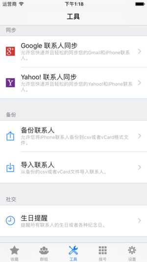 全能通讯录是一款通讯录管理工具,包括联系人管理,智能群组管理,私有联系人管理,邮件短信快捷群发等等。 全能通讯录也是一款功能全面的社交辅助工具,它支持Google联系人同步,通讯录备份为Excel或者vCard文件,清理并合并重复联系人,联系人信息二维码输入输出等诸多高级功能。 #####高级联系人管理##### √支持创建,编辑和删除联系人 √支持从Gmail,vCard,Excel,二维码(QR Code)等多种途径导入联系人 √在联系人信息中显示头像,职业信息,电话号码,邮箱地址,住址及个人主页 √通过单击实现拨打电话,发送短信、邮件,在地图上显…