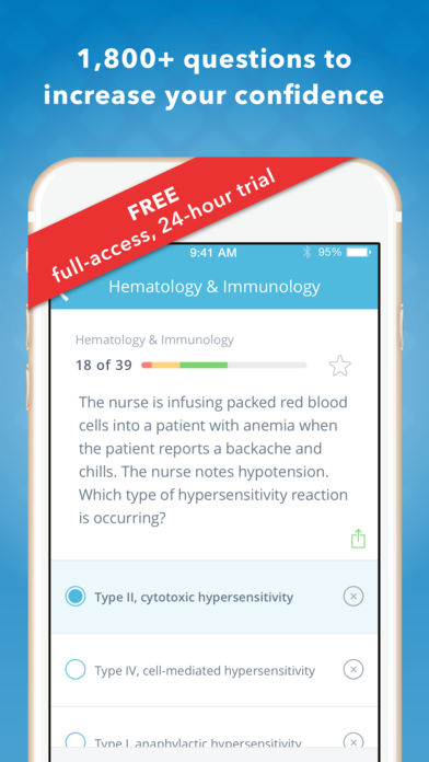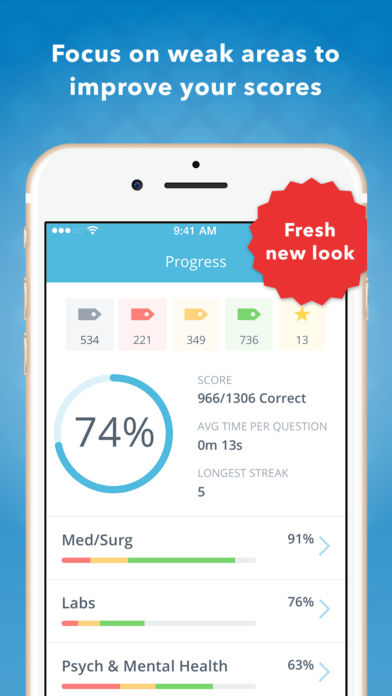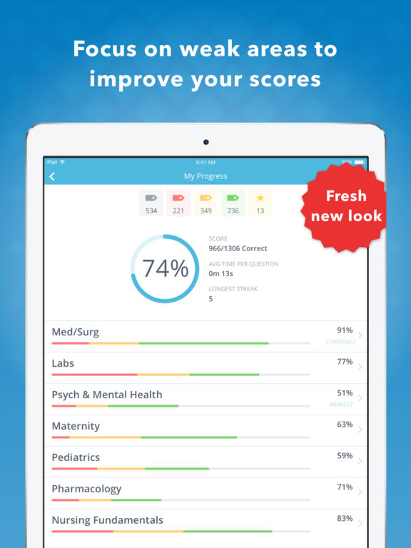 Master the most important test of your career: the NCLEX. With over 1,800 practice questions, quizzes, mnemonics and strategies, NCLEX RN Mastery will help you pass your test in 75 questions. NCLEX RN Mastery was created by nursing educators and professors who understand the struggle and pressure of nursing students just like you. We are always improving our app and adding new content at no additional cost. NCLEX RN Mastery was developed to give you an edge by obsessively focusing on providing maximum learning in minimal time. Review NCLEX RN practice questions anywhere, anytime -- no network connection required! Install the free version today and jumpstart your studying! We have provided a limited free version of the app that you can try before deciding to upgrade. This version includes a limited amount of practice questions and basic progress metrics. Upgrade to the Standard Version with a one time, in-app purchase that includes access to additional practice questions, tough quiz questions, must-know terminology and detailed progress metrics. Get your best value by upgrading to the Premium Version with a one time, in-app purchase. The Premium Version includes lifetime access to: • 1,800+ meticulously crafted NCLEX Questions with explanations and pictures • 30% of the Questions are Select All That Apply (SATA) • Pharmacology questions • Content based on past NCLEX RN questions • The most comprehensive list of NCLEX RN mnemonics on the market • Practice quizzes • Detailed test taking and study strategies • In depth statistics that display your strengths and weaknesses • Built in timer so you know how long you are taking per question • Retina display graphics Download NCLEX RN Mastery now and see why more than 1,000,000 nursing students made NCLEX Mastery the #1 rated nursing app. Our reviews speak for themselves! BONUS: Purchase the mobile version and we'll grant you access to the full-featured ONLINE version. Our Customer Success Team is available from 8am to 6pm, Monday - Friday (except on major holidays). Please contact us if you have any questions, suggestions, or comments—nursing@hltcorp.com or 319-237-7162.