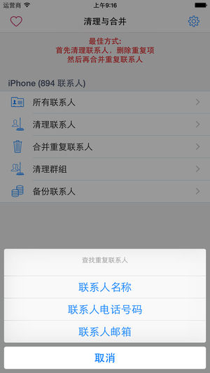 通讯录清理&合并专家是专门用来清理通讯录的首选工具。 *)支持快速批量删除iPhone账户的联系人(新增功能) *)支持清理iPhone通讯录的群组信息,包括无联系人,重名及包含重复联系人的群组(新增功能) *)应用可以快速、批量地去除指定账户内任意联系人中存在的重复和无用信息(例如无联系人名,无电话号码,无内容,号码重复以及邮件地址重复等等) *)应用可以快速、批量地去除指定账户内多个联系人之间的重复资料(例如可以根据重复的联系人名称,重复的电话号码以及邮箱地址来搜索重复联系人) *)应用允许用户在合并前,将指定账户内联系人备份到CSV(Excel)以及VCF(vCard)格式文件,保…