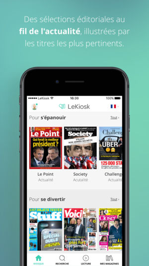 Découvrez la meilleure application de lecture de presse afin d'accéder à vos titres favoris en un instant, où et quand vous voulez. Faites de LeKiosk votre nouveau réflexe d'enrichissement personnel afin de vous informer, vous cultiver mais aussi vous divertir, comme plus d'un million d'utilisateurs…