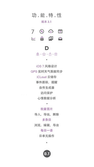 【放慢生活的节奏,记录心情,与内心对话,认识那个真正的自己. 'u.Memory' 完美日记,创新体验.】 “u.Memory”将给您带来了一个很特别的日记体验;通过内置像机和视频来捕捉每一个属于你自己的回忆;通过事件跟踪器建立提醒让您不错过任何一个约会;动态面板让您可以自定义自己的操作方式;回忆图廊让您跟随时间浏览您的回忆往事;自传生成器让您拥有一份属于您个人的一套回忆录;21个免费主题更换;GPS实时天气和位置定位;开启iCloud云同步,就能保存所有的内容到云端,随时找回属于你自己的回忆;还有更多... ** 功能列表: 01. 简约风格设计 02. 动态面板 03. 事件…