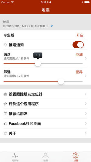 超过1.000.000的下载量,在App Store中地震仍是排名第一的,最流行的地震应用程序。现在也可使用于Apple Watch! 获得来自多个渠道的全球最新数据,并接收推送通知提醒。 主要特点: - 一旦接收到可用的官方消息数据,将向您的手机发送推送通知(您可以根据位置和/或震级的阈值设置警报)。推送通知允许应用程序在未使用时接收事件数据,并且不会增加电池消耗。 - 地图使用不同的大小和颜色表示事件严重性和年龄 - 按地区(国家,洲)或震级筛选事件 - 多个数据渠道包括:美国地质调查局(USGS),欧洲 - 地中海地震中心(紧急监援中心),澳大利亚地球科学,GNS科学(GEONET),地…