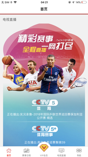 中央电视台 CCTV 旗下新媒体机构中国网络电视台 CNTV 携手世界专业体育视频行业领导者 NeuLion 共同为中国体育迷们重磅推出 央视体育VIP 高清互动体育视频服务。 本应用为 央视体育VIP 的官方客户端,可以用来观看所有热门体育比赛的高清直播、录像和精彩片段,球迷必备! 1、内容优势: 央视体育VIP 整合央视海量版权赛事资源,囊括足球、篮球、网球等运动的几乎所有重要赛事的比赛视频资源,甚至包括电视台无法全部转播的比赛。央视体育VIP 平台播出的热门赛事包括欧冠、西甲、意甲、德甲等欧洲足球联赛和杯赛,世界杯、亚冠、中超等联赛,NBA、CBA等美国中国职业篮球联赛,美网、澳网、…