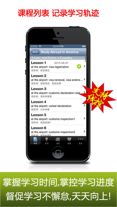 《出国留学英语》为您一站式的解决了出国留学,在国外生活所需要的所有场景的英语口语内容。场景式的教学方式让您更轻松的学习英语,不知不觉英语已经上了好几个台阶。