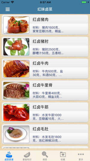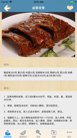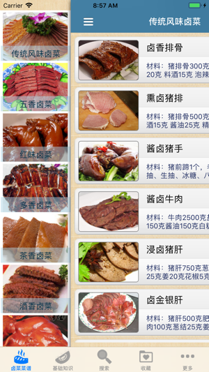 无广告,浏览速度快,不耗流量,离线本地浏览,不用上网也可以使用。 详细介绍卤菜200种菜品的卤制方法,分为有传统风味卤菜、五香卤菜,白卤菜肴,红味卤菜、多香卤菜、茶香卤菜、酒香卤菜、豉油卤菜、白卤卤汁的制作等几大类,并分别其菜品的具体卤制方法,以及卤菜的基础知识,包括四川卤菜的特点与分类、原料选择及加工制作步骤及要领以及卤水保管、卤水材料等。