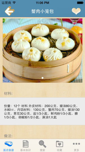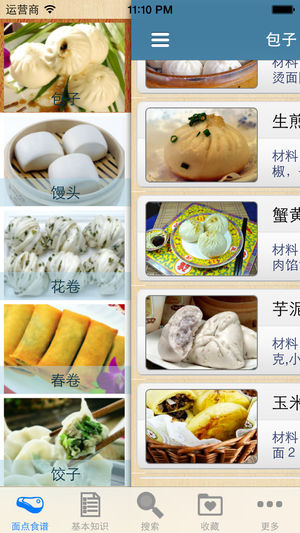 无广告,浏览速度快,不耗流量,离线本地浏览,不用上网也可以使用。 为您介绍包子、馒头、花卷、春卷、饺子、馄饨、饼、火烧、馍、烧卖等13大类的500余种经典面点的料选择及加工制作步骤及要领。足不出户,自己动手轻松自制美味面食。