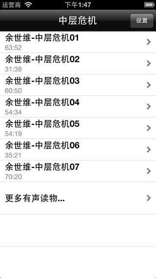 ====【余世维-中层危机-有声经典】==== 《余世维-中层危机-有声经典》全集,限价6元,同时支持iphone和ipad。 支持定时播放。 支持后台播放。 无任何广告插件。 增加记忆功能,可以继续收听上次关闭时的记录。 ====【内容介绍】==== 当人们习惯于将目光聚焦于企业高层时,却忽视了另一个重要群体——中层。事实上,中层的作用无可替代——他们既是企业决策的接收者,又是监督决策顺利实施的执行者。换句话说,没有中层,企业的任何英明决策都只是纸上谈兵! 中层发挥着怎样的作用? 如何从中层内部选拔人才? 如何培养中层? 在企业面临危机时,中层扮演着什么角色? 处于不同发展阶段的企业究竟需要怎样的中层? 余世维博士将为您揭开“中层”的重重迷雾。找到应对“中层危机”的金钥匙。