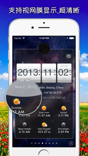 日出日落 HD 是一款非常强大,非常易用的计算任意日期日出时间、日落时间、日照时长、正午时间、黎明时间、黄昏时间、月相等信息的应用程序。 它不仅可以计算出当天的时间,还可以计算出任意位置的过去或者未来的时间。 日出日落 HD 使用 iPhone 或者 iPod touch 的机能来定位和检测当地的经度和纬度,之后利用这些信息用来进行相关的计算,所以你不需要选取位置就可以显示出当地的信息,一切都是自动化。 除了可以使用当前位置以外,日出日落 还包含世界所有城市的位置信息,用来显示日出日落等时间。 当使用数据库的位置时,日出日落不需要 WIFI、蜂窝数据网、和GPS信号就可以计…