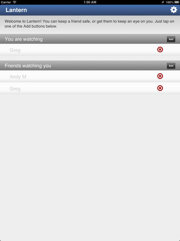 Lantern is an iPhone application that allows friends and family to check-in with each other to say that they are safe. After you select someone, then they need to check-in at a pre-determined time interval. Only if they fail to check-in, is their last known location revealed. Examples of use include, making sure your children are safe when they are out with friends, tracking students on field trips, and ensuring loved ones safe on long journeys. Disclaimer: Lantern uses the GPS component of your iPhone to monitor your location. Lantern only uses the GPS device while you are the target of an active session. Continued use of GPS running in the background can dramatically decrease battery life.