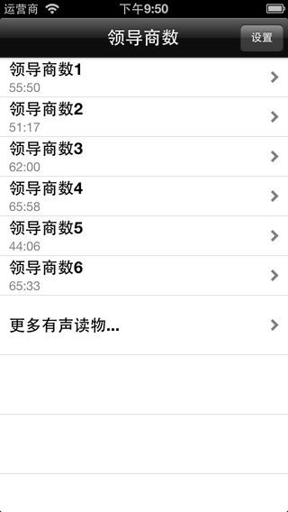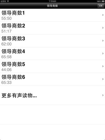 ====【余世维-领导商数】==== 《余世维-领导商数》全集,限价6元,同时支持iphone和ipad。 支持定时播放。 支持后台播放。 增加记忆功能,可以继续收听上次关闭时的记录。 ====【内容介绍】==== 管理不等于一手遮天,果断不等于专断,团队不等于群体,沟通不等于开会,客户满意也不等于客户忠诚; 照顾好你的员工,员工就会照顾好你的客户,进而照顾好你的利润; 天天讲沟通,可是往上沟通没有胆(识),水平沟通没有肺(腑),往下沟通没有心(情),怎么办? 领导阶层的主导位置和员工的参与. a) 管理者的权利来自于哪。组织制定是其次,个人魅力是主要的。 b) 以职务为重心,衔接断层来强化企业的团队意识。 c) 协调好经理人与员工的关系。 二. 权力的基础 权力的不同,基础也不相同。(合法权由组织制定;报酬权是利益的诱惑;强制权是惩罚暴力的结果;专家权是权也技能;典范权是人格魅力的体现。) 三. 提高对方的满意程度 四、企业文化 = 组织所重视的一组关键特征之一 1. 个人拥有独立自主权的程度 2. 鼓励员工冒险的容忍程度 3. 设定目标与绩效期望的程度 4. 各部门彼此协调运作的程度 5. 经理人支持部属的程度 五、企业文化 = 组织所重视的一组关键特征之二 6. 规定与管制办法多寡的程度 7. 成员认同于整个组织的程度 8. 薪酬给与根据员工绩效的程度 9. 允许员工公开争执与批评的程度 10. 内部沟通受到职权层级限制的程度 六、细节与量化 1.“细节”指导动作、步骤、做法的规范。 2. “量化”指时间、货币、单位数量的换算