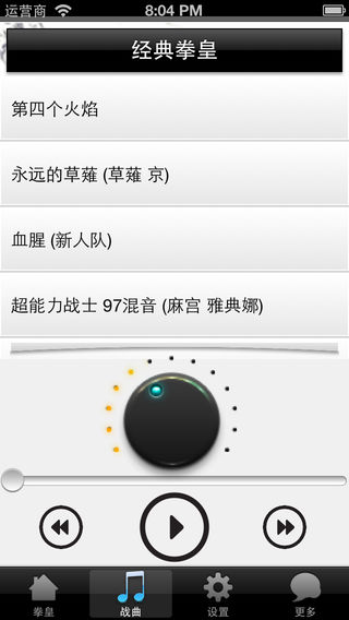 格斗之王:拳皇是我们80后最值得回忆的动漫,游戏。 特别是97和98。 游戏厅狂扔游戏币和人对战的场景多么的值得回味。 希望此app带给你许多美好的回忆,经典不多说,你懂的。 此app包括动漫和游戏战斗曲,我们再熟悉不过,绝对值得收藏。
