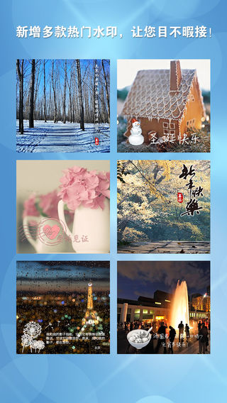 iTunes上最绚丽、最好玩、最懂您的水印相机! 天气水印知冷暖,心情水印拉近你我距离,更有节日水印送祝福。 当然,当图片精美,水印成了画蛇添足,您可以选择关闭。 水印位置不够搭?没关系,您可以长按拖动。 地理位置不够准确?ok, 您可以点击修改。 懒得想分享文字?我们想到了,为您提供了精美词句供您选择。 我们只为您设计,为您服务,最终由您决定。