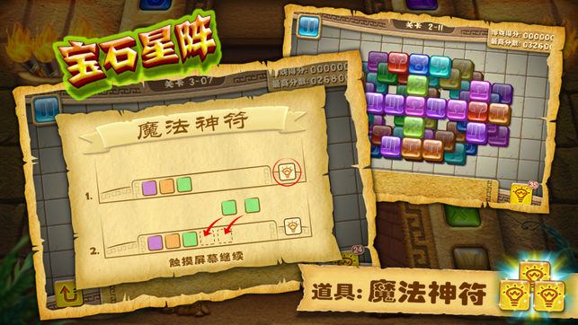 宝石星阵是结合了麻将对对碰和经典三消游戏玩法的解谜游戏。 你的目标是消除每一关卡所摆放的十二星座符文宝石。通过拾取相同颜色的宝石进行配对。 游戏玩法: 1.游戏刚开始下方会有一个收集框,一共能够放下7颗宝石。 2.点击游戏场景里面的宝石的话,宝石就会自动被收集到下方收集框。 3.在你所有收集的宝石中如果含有同种颜色的宝石超过了3个,那么宝石就会被清除掉。 4.如果下方的收集框所收集宝石的数量超过了收集框的最大容量(7个),那么游戏将会结束。 有遇到任何问题和建议请联系我们。 官网:http://www.starsprite.com/