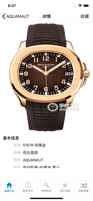 目录及报价更新到2015年最新版本。 世界手表大全为广大手表爱好者、消费者提供最大最最全面的腕表信息。 软件目前共收录70个品牌,3万5千多款手表, 从顶级奢华到时尚亲民等应有尽有, 是不可多得的随身手表参考应用! 每个品牌均可按系列、价格、机芯类型、男表、女表、中性表、表壳材质、表盘颜色、表盘开状进行筛选查看。 提供品牌简介,手表专卖店地址供查询。 可以将喜欢的手表加入收藏夹方便随时查看。
