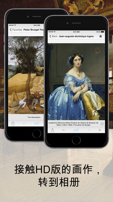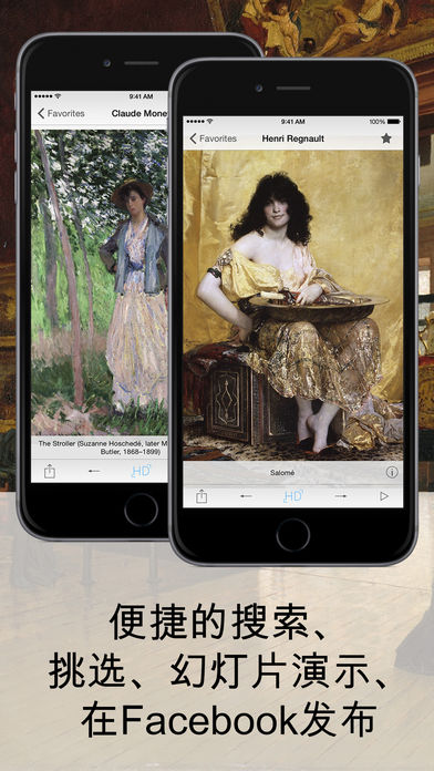 该应用程序包含一个有330多幅最好的图片的收藏品(大都会艺术博物馆)。在这里,您可以找到伦勃朗,丢勒,委拉斯开兹,埃德加·德加,弗朗西斯科·德·戈雅的作品和许多其他著名画家的作品。 该应用程序包括最有名的博物馆的画作: - “斗牛”(弗朗西斯科·德·戈雅) - “托莱多的风景”(格列柯) - “夏潘蒂埃夫人和她的孩子”(雷诺阿) - “萨宾妇女被绑架 ”(德拉克洛瓦) - “自画像”(伦勃朗) 我们的应用程序不仅会帮助您成为更多的教育,而且还提供了一个独特的机会,走通过一种虚拟博物馆和欣赏世界艺术的杰作。观看欣赏! 主要特点 - 330幅画作与200位多画家 - 按艺术家和画体的排序 - 接触HD版的画作,转到相册 - 通过电子邮件发送画作,转到相册 - 在Facebook发表画作 - 方便的画作的搜索 - 将图片添加到收藏夹中 - 自定义过滤器画作 - 幻灯片模式 - 下载离线观看图片 - 放大图片