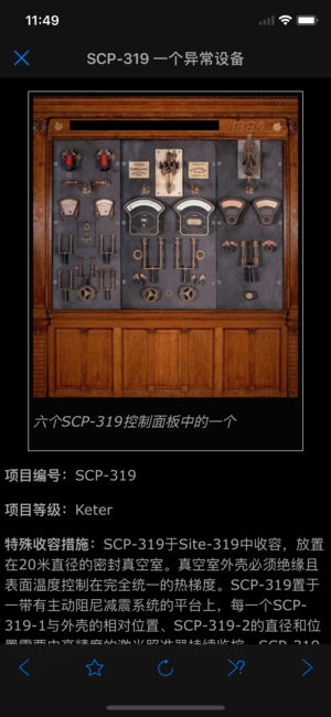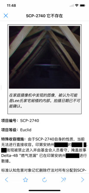 SCP Foundation DB nn5n - SCP基金会是一个有关于各种超自然现象、个体、地点等等的系列作品。这个App为非官方的SCP基金会离线数据库,让你可以不用联网就能阅读其中的内容。 特点: - 3种语言:中文,英文,日文; - 菜单中包含“上一条”,“随机物品”, “下一条” 等按钮; - 正常/夜间两种阅读模式; - 可以收藏自己喜欢的物品; - 超过3000页的可阅读物品; - 3D Touch; 当你点击“随机物品”按钮的时候,你将打开一个随机的SCP物品页面. 注意 ! SCP基金会只是集体创作的小说!并不是真实存在的。但如果你是个胆小的人请不要安装此App以及不…