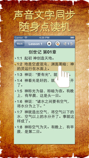 注意:该版本为中文朗读版,默认不显示英汉对照,您可以在设置里面选择打开英汉对照。 《旧约圣经》通常被分类为摩西五经(梅瑟五经,又称律法书)、历史书、诗歌智慧书和先知书四部分。旧约圣经全在耶稣诞生之前已写成及被辑录成书,与耶稣诞生后成书的《新约圣经》相承。 追随上帝的踪迹,现在开启你的圣经旧约之旅吧。 本应用具有进度管理功能,记录您阅读圣经的每一个足迹。 本应用具有经文测试功能,测试每一句经文。此功能Appstore仅此一家,不可错过。 本应用将帮助您有效的阅读圣经旧约,其他特色: 1. 声音字幕同步,边听边读。 2. 点读功能,全文定位点读,点哪里,播哪里。 3. 英汉全文字典,任意单…