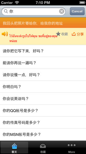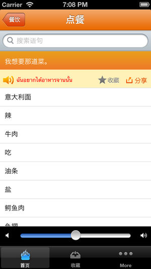 真人专业朗读、离线使用、1180句地道语句,帮助你的泰国放松旅行,专业翻译、朗读,你值得使用! 语言不通怎么游泰国、玩普吉岛、看人妖? 蚂蜂窝旅行网独家推出《泰语翻译官》, 真人发音,离线使用,真正帮助你的泰国旅游。 内容包括泰国旅游中的交通、住宿、景点、美食、购物等基本信息, 还有泰国当地的城市景点、饮食文化、娱乐购物等地道信息, 语句中泰文可见, 点击即可发音, 是你真正的繁育翻译官。 功能介绍: 1、支持iPhone5和iOS6 2、安装后,1180多句语句真人朗读,地道专业,不受网络影响; 3、旅行相关场景分类,中泰文对照,点击即可发声; 4、语句收藏,方便查看;…