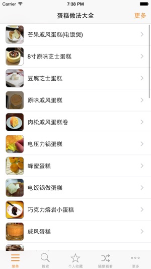 最全最流畅的蛋糕做法大全,一次下载,所有信息离线使用。所有IOS设备通用,支持一键收藏,摇一摇随机查看,全文搜索。 ◆丰富的离线数据包,一次下载,无后续流量费用 ◆菜谱资料详实,步骤清晰 ◆一键收藏,随时查看,支持手势滑动切换 ◆全文搜索,键入食材、做法即刻查找相关菜谱