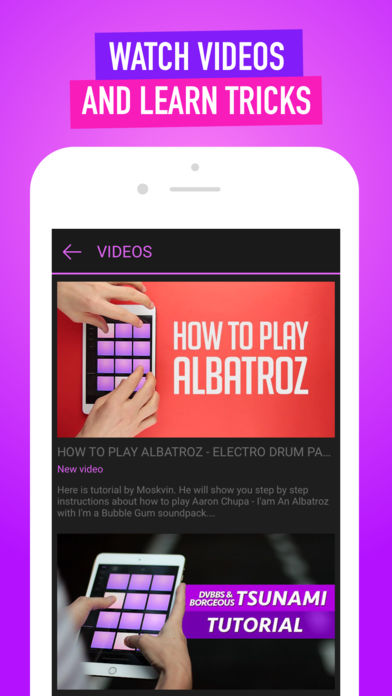 Electro Drum Pads 24 is the easy beatmaking instrument for creating EDM beats and music! Our electro presets will make your music performance sound like a popular EDM producer. Play on the go with professional studio samples, new free sound packs every month. Watch videos and tutorials right in the app and learn how to play EDM. Record your beats and music, share it with your friends or with our whole community: post your video with #drumpads24 hashtag! Use effects to improve your beats: - Filter - Delay - Reverb - Pitch - Distortion Electro Drum Pads 24 has different type of sounds: - Base lines - Big kicks - Synth chords - Synth one shots - Kiks - Hats - Snares - FX - Vocals Don't miss our another beatmaking app with a lot of soundpacks in different music styles - Drum Pads 24! If you want to suggest an idea for new preset then join us on Facebook and send us a message. For information contact us by email or Facebook: www.facebook.com/drumpads drumpads24help@gmail.com Enjoy! Be the party hero!