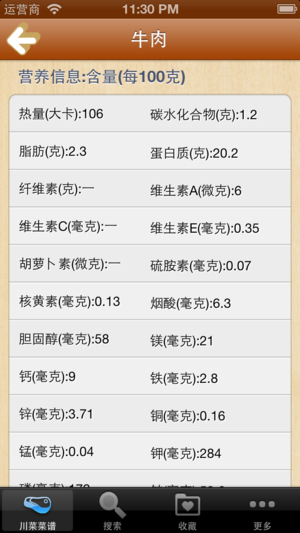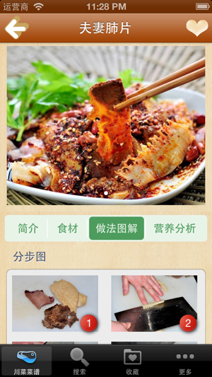 精心挑选川味家常菜及火爆流行菜式,按原料细分家常凉菜、经典小炒、猪肉类、牛肉类、水产类、素菜类、小吃类等七大类,每道菜式均配精美图片,按步骤详细讲解,每步并配有相应图片,保证可以成功操作100%,有图有真相,以及所用的食材的营养分析,是您的川菜烹饪宝典。 无广告,浏览速度快,不耗流量,离线本地浏览,不用上网也可以使用。