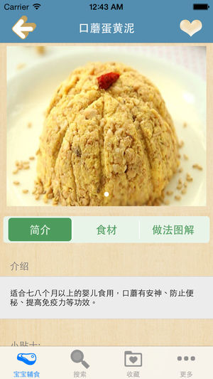 在宝宝吃得不错的前提下,辅食的喂食应以循序渐进、一餐一餐的方式开始。宝宝的辅食也不一定要在非常饿的时候尝试,有时候可能出去玩了一会儿,回来后妈妈就可以先喂宝宝一点不一样的东西,若等到孩子非常饿时才给予他们不熟悉的食物,宝宝则可能会非常抗拒。 为新手妈妈介绍了种类丰富的辅食食谱,从宝宝添加辅食开始,每个月份精心推荐了辅食食谱,并详尽介绍了原料、制作方法、特点、功效,按步骤详细讲解,每步并配有相应图片,保证可以成功操作100%,有图有真相。每一道辅食不但营养全面丰富,符合婴幼儿的发育成长需要,更难能可贵的是操作简单,尤其适合不擅长烹饪的新手妈妈。 无广告,浏览速度快,不耗流量,离线本地浏…
