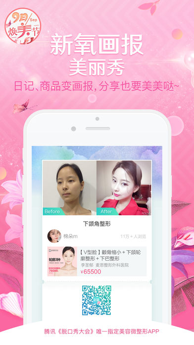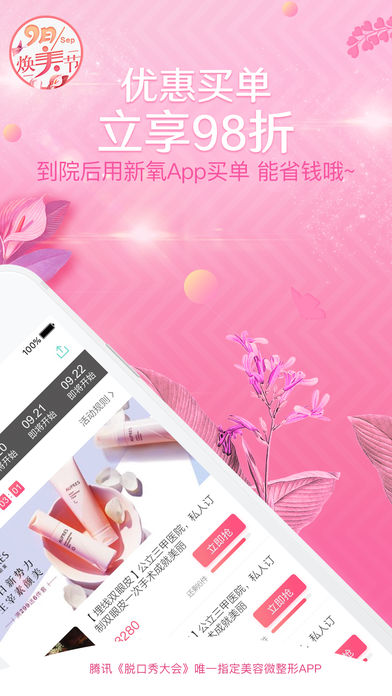 【整形别冲动,先问问新氧】 1.腾讯视频《脱口秀大会》官方唯一指定美容微整形APP,池子李诞张绍刚,变美都得靠新氧。 2.新氧是腾讯双百计划重点孵化企业,是中国领先的、千万用户使用的微整社区和微整特卖平台! 3.新氧与泰康在线、悟空保强强联合推出“氧气保”,变美更安全! 4.周周免费整形福利,新用户注册即获1280元红包! 5.亚太地区5000家医美机构实地考察,帮你找到真正口碑好医生! 6.奇葩说辩手肖骁、姜思达倾情推荐的微整APP,安心有保障! 【安全指南】 *百万案例* 320万篇真人变美日记,供您参考! *先行赔付* 氧气保来了,安心变美送保险! *在线预约* 微整特卖、价格透明,无任何隐形消费! *术后追踪* 100%真药检验,术后恢复护理建议,全程护航! *圈子社交* 看直播,做主播,时尚达人带你聊聊变美那点事! 加入新氧美容APP ,遇见美丽的自己,遇见美好的他!~
