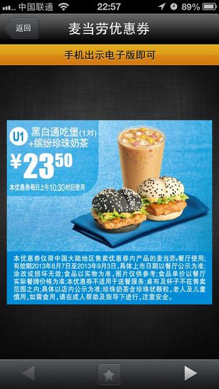 麦当劳全国连锁餐厅优惠券大全!去麦当劳再也不用打印纸质优惠券了!出示手机即可使用,cool!全国不限地区使用,物价上涨,随时随地享受优惠乐趣。 特色功能: 「省钱省纸」无需打印,支持全国手机版优惠券使用 「零流量离线使用」无WIFI网络的地方也可支持离线使用,无需担心流量问题 欢迎加入优惠券QQ群:167626467