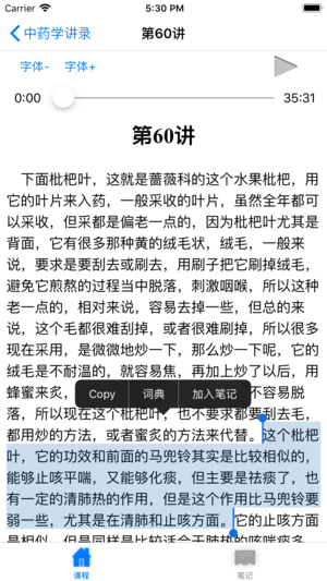 本讲座由成都中医药大学教授张廷模主讲,共七十九讲,包括全部讲课音频(共计65小时),并收录完整文字讲稿,适合中医从业人员以及广大中医爱好者学习中药学使用。 --- 听名家名师讲中医,快速步入中医学习的最好方法 讲师介绍: 张廷模,成都中医药大学教授,从事《中药学》教学30余年,现为教育部国家级精品课程《中药学》和四川省精品课程《中药学》负责人,四川省高等教育教学名师。先后承担国家科技部973、教育部、四川省科技厅和中医药管理局科研课题多项,并多次获奖。主张继承不泥古,发扬不离宗。提出了中药药性“三性说”、“一物二气说”、“配伍的相对性”等一系列药性理论观点,并对中药功效记述的…