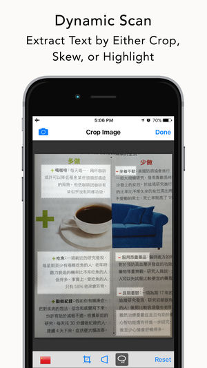 iPhone摄像头抓拍照片,OpticText立即从图片中识别文字和翻译,离线操作在您的iPhone。 OpticText是最具创新性的文字识别扫描仪,使您可以裁剪或扭曲图像,或触摸突出你要提取文本的区域。 它完全离线操作,即使翻译。所有你需要做的就是下载您所需的语言翻译到你的iPhone,那么你可以进行翻译没有互联网连接。 ___________________________ ▶ 为什么OpticText? ◉ 多用于扫描文本的方法。 1. 通过触摸 - 触摸突出你要提取文本的扫描区域。 2. 通过裁切 - 裁切要扫描的图片。3. 通过歪斜 - 纠正倾斜的画面图像的角度。 ◉…
