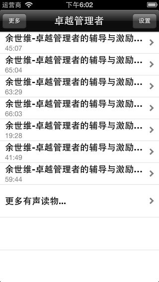 ====【余世维-卓越管理者的辅导与激励技巧】==== 《余世维-卓越管理者的辅导与激励技巧》全集,限价6元,同时支持iphone和ipad。 支持定时播放。 支持后台播放。 增加记忆功能,可以继续收听上次关闭时的记录。 ====【内容介绍】==== 《卓越管理者的辅导与激励技巧》里,用生动典型的实例和诙谐幽默的语言,帮助管理者打造自己的辅导与激励模式,使之成为更优秀、更全面的企业管理人才。很多企业的管理者或许知道怎样去领导自己的员工,却忽略了管理者还肩负着辅导与激励员工的责任。那么,应该怎样去辅导员327怎样掌握辅导员工的技巧?对员工的激励又应该表现在哪些方面?