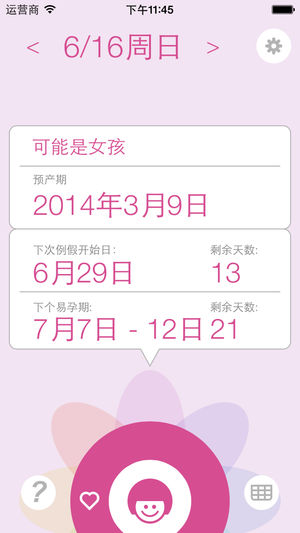 本app适用于经期较有规律的女性。 1、美观易用的友好界面; 2、经期、同房记录,易孕日、预产期、生男孩、生女孩的科学预测; 3、可选设置密码保护您的隐私。 * 由于本app不会搜集您的任何信息反馈给开发者,因此设置密码后需要牢记密码,一旦忘记将无法找回密码。 * 免费版月历查看有14天限制,之后将需要付费使用月历查看功能。 * 有关受孕的性别预测仅供参考。