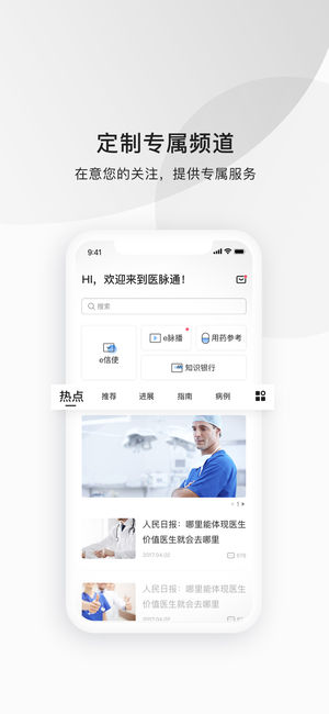 医脉通秉承“感知医学脉搏,助力临床决策”理念,为医院内医生,护士,医药工作者及在医学院校的医学生提供热门医学相关资讯,前沿学术进展,经典医学病例,并通过热门评论,读片分享,话题讨论,知识银行等多种形式,使广大医务工作者及医学生在轻松的氛围中获取更多的医学知识。 主要功能简介 【医学资讯】 网罗时下医学圈内热门医学资讯,客观报道,搜集整理全新学术进展,让医生及医学生知其然,知其所以然 【知识银行】 筛选全科室典型病例,疑难病例在线分享,百万医学圈内广大医务工作者在线沟通交流学习 【e信使】 为医生,医学生等医务工作者量身定制临床用药相关资讯,既能学习用药知识,又能轻松拿麦粒 【e脉播】 邀约行业…