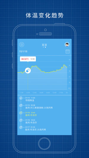 这是发烧总监有史以来最大的一次变化!不仅重新设计了界面,还加入了体温分析的功能,能显示每一次发烧的最高温度以及持续时间。体温变化趋势图将体温曲线与退烧处理方法结合在一起,能让医生更客观地了解宝宝病情变化。同时有多个宝宝的家庭,一台手机也能连接多台发烧总监智能体温计了! 【持续测量】配合发烧总监智能体温计,每4秒采集一次体温,绘制体温变化曲线。 【高温报警】帮您在第一时间发现宝宝体温异常,采取最及时的退烧措施。 【事件记录】重要事件(例如:服药)家长可以方便记录,结合体温变化,护理效果一目了然。 【数据分析】与哈佛医学院合作,让体温说话,为您带来最专业的分析。 【处理建议】来自于美国排名第一的…