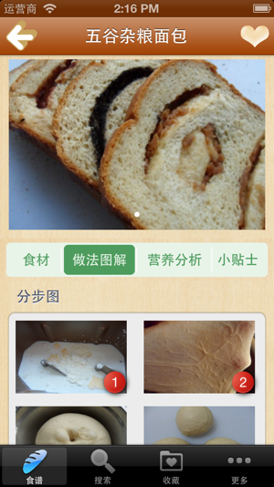 零起点也能轻轻松松做面包。也正是因为绝对天然,不含防腐剂和添加剂才让自己制作的面包更加健康。 不仅有各式的面包做法,还有使用面包机做蛋糕、甜甜圈、果酱、葱油饼等。 精选了近百道面包机烘焙面包的配方,包括材料配方和做法、营养分析。按步骤详细讲解,每步并配有相应图片,保证可以成功操作100%,有图有真相。 离线浏览,不用联网也可以浏览,速度快,无广告。