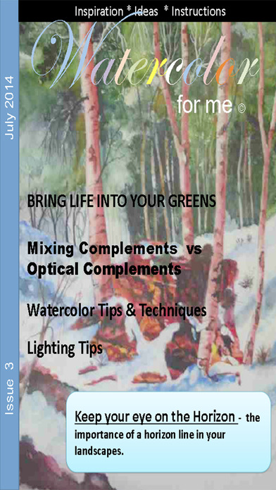 Instruction in painting in watercolor. Painting Exquisite Florals. Keys to Developing Your Unique Style. Understanding Design and Composition to make your paintings stand out. Common Problems Solved. Step by step videos, Seascapes, Landscapes all come to life. Watercolor For You Subscription available: A single issue for $6.99 (non-subscription) 1-Year subscription for $59.99 automatically renewed until cancelled. Payment for all purchases will be charged to your iTunes account at the confirmation of your purchase. SUBSCRIBERS' AUTOMATIC-RENEWAL FEATURE: Your subscription automatically renews unless auto-renew is turned off at least 24-hours before the end of the current period. Your iTunes account will automatically be charged at the same price for renewal 24-hours prior to the end of the current period (another year for annual subscribers, another month for monthly subscribers) unless you change your subscription preferences in your account settings. You can manage your subscriptions through your Account settings after purchase. No cancellation of the current subscription is allowed during active subscription period. – Subscriptions may be managed by the user and auto-renewal may be turned off by going to the user's Account Settings after purchase -No cancellation of the current subscription is allowed during active subscription period. – Account will be charged for renewal within 24-hours prior to the end of the current period, and identify the cost of the renewal – Any unused portion of a free trial period, if offered, will be forfeited when the user purchases a subscription to that publication, where applicable. - If you require support, please go to http://www.myworldofwatercolor.com/contact. Privacy Policy: http://www.myworldofwatercolor.com/privacy-policy. Terms of Service (TOS): http://www.myworldofwatercolor.com/terms-and-conditions.