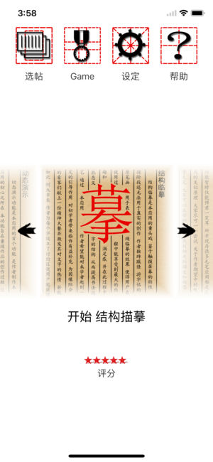 你是否曾想像自己如书法大师一样挥毫呢?来试试吧,用你的手指在iPad和iPhone上练习毛笔书法。 “活字帖”利用中国古代名家书法作品中的原笔迹,在你描摹或者临帖时绘制出来,使得你的书法效果能媲美真迹,让你体验如书法家一样的练字感受,更真切的感受书法的魅力。 本作与现有大多数作品的最大区别在于,大多数现有的作品只是根据手指运行轨迹,用计算机计算模拟出类似于毛笔笔迹的效果。但是,因为触摸屏的限制,计算机再如何聪明,又如何能知道用户运笔时的轻重缓急,浓淡干湿呢?故本作规避了用笔技巧,着重于练习每个字的字体结构。因此,本作并不能代替笔墨纸砚的常规练字方法,但是却可以从一定程度上提高用户的书法…