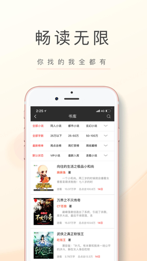 小说、小说阅读大全、全本小说阅读、听书、热门小说、精品小说、好看的小说—飞卢小说 飞卢小说是书迷们必备的小说阅读器。拥有海量小说大全、全本小说、玄幻奇幻、言情小说、武侠小说、都市小说、穿越架空、有声小说、耽美小说、同人小说、爱情小说、科幻灵异、 经典图书等各类小说阅读大全应有尽有,超质感阅读体验,告别书荒!支持 TXT、EPUB、PDF、EBK2、UMD、MOBI等多种手机阅读模式! 特色功能: 【健康阅读】护眼模式、夜间模式、亮度自适应、极简模式、字体大小、多样独特的阅读主题, 【每日签到】:每天签到送金币,好礼送不停; 【实时更新】:连载小说,更新提醒,随心阅读; 【内容齐全】:玄幻、都…