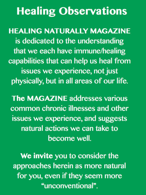 HEALING NATURALLY MAGAZINE is dedicated to helping readers with a natural approach to wellness. Each issue is dedicated to information that can be used immediately to help individuals with chronic or acute issues heal themselves using their natural capability for wellness. Take advantage of our 7-DAY FREE TRIAL. Readers will find ideas for illness relief and prevention that are contributed by medical professionals around the world who are dedicated to wellness for every member of the family. From diet to exercise, stress relief techniques to using food for health – HEALING NATURALLY MAGAZINE offers the cutting edge for up-to-date information on natural health. The magazine provides content on illness relief by offering natural solutions that the reader can use immediately. And, the reader can also benefit from the approaches provided that will aid in enhancing wellness and preventing illness thru better nutrition, exercise, stress relief techniques, lifestyle changes and other procedures. The videos provided will give the subscriber tools they can apply to their own health issues immediately, and will help lead to a better life. HEALING NATURALLY MAGAZINE is a digital only magazine and is published every two months. The 2nd issue is the January/February, 2014 issue. Pricing: Single issue = $3.99 (non-subscription, or repeating single issue subscription automatically renewed until canceled). 6-issue subscription = $14.99, automatically renewed until canceled. SUBSCRIBERS' AUTOMATIC-RENEWAL FEATURE: Your subscription automatically renews unless auto-renew is turned off at least 24-hours before the end of the current period. Your iTunes account will automatically be charged at the same price for renewal 24-hours prior to the end of the period covered by 6 issues unless you change your subscription preferences in your account settings. You can manage your subscriptions through your Account Settings after purchase. No cancellation of the current subscription is allowed during active subscription period. Our Privacy-Policy webpage is http://healingnaturally2013.wordpress.com/privacy-policy.