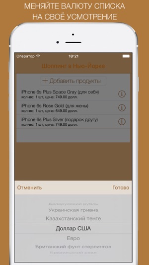 !!!РАСПРОДАЖА!!! Цена приложения 15р вместо 149р !!!УСПЕВАЙТЕ!!! Покупки! - Ваш помощник в магазинах - это простой и удобный в составлении список покупок, благодаря которому Вы избежите незапланированных покупок, сэкономите время и бюджет! Основные особенности приложения: - Составление нескольки…