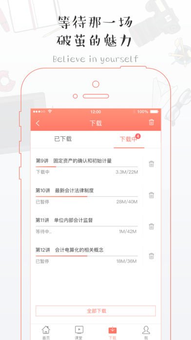 内容摘要: 东奥会计课堂,是东奥会计在线旗下专为会计类考试学员精心打造的一款移动学习应用产品,学员可以通过课件、讲义方式,结合清新的界面设计和人性化的操作学习网站内相关课程,及享受课程服务,实现随时随地学习的目的。 东奥会计在线是中国知名大型会计远程教育综合性学习平台,成立于2007年9月,主要是为在线大学生、在职人员等会计人士。提供注册会计师,初级会计职称,中级会计职称,高级会计职称,高级会计职称,注册税务师,会计继续教育,注册会计师后续教育,会计从业资格考试,会计实务操作9种考试课程提供咨询,资讯,答疑及培训等一站式学习服务。 主要功能: 1、【每日一练】精选练习题,积少成多,在不知不觉中提高成绩。 2、【学习记录】首页即时推送学习记录信息,帮助推进学习计划; 3、【在线课程】学员登录应用后,通过课件,实现远程在线学习课程和同步记录。 4、【课程下载】提供视频和讲义下载,让您在没有网络的时候也可以进行学习。 5、【高清课件】以最合适的视频尺寸,最合理的清晰度,科学的利用您的网速,在不影响学习效果的情况下将视频播放度达到极致。并可以与音频+讲义互相切换。与网站上同步显示,紧扣课程内容,更好的提高了您的学习效率。 6、【听课记录】记录每次一次听课的播放位置,下次继续学习。 7、【做题记录】随堂练习课后作业历年真题模拟考试练习数据记录,随学随练。 8 【教材答疑】精选官方考试教材答疑,每周不定期推送,边看书边解惑。