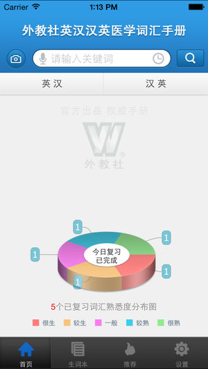 【软件简介】 外教社官方权威正版发布,其他同名医学词汇手册均为盗版。《外教社英汉汉英医学词汇手册》是由上海外语教育出版社发行的词汇词典类软件,软件收录了医学基本词汇(英汉、汉英双向收词20000余条),是医学专业必备手册。本软件由海笛科技提供产品支持,具备手机上最便捷的查词功能(摄像头查词、语音查词等),还有清晰发音、生词收藏、生词辅助记忆等学习功能。选择高品质词典和词汇手册,学习更有保障! 包含应用内购买,购买后畅享正版内容,无每日使用次数限制。 【软件特色】 (1)权威正版:本手册是上海外语教育出版社发行的本行业最权威手册。 (2)专业精选:收录医学基本词汇(英汉、汉英双向收词200…