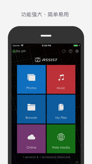 把你iPhone/iPad上的照片、视频和音乐播放到支持DLNA的智能电视、电视盒子、电脑、音箱或其它智能设备上去。 全网视频免费投!支持百度网盘,手机能播就能投,使用电视助手看电视才是看电视的正确姿势! 易于使用,选择、播放,只需两步就可以在你的电视上播放手机/平板上的媒体! 任何时候,任何地方,任何方式,与朋友或家人一起分享欢乐时光:使用电视助手,你可以以各种方式播放你喜爱的照片、 视频和音乐,如播放到客厅的电视上,以便每个人都可以看到,可以听到。 电视助手还可以浏览其它DLNA设备上的媒体,并把它们播放到你的手机/平板或其它DLNA设备上! 方便地从其它设备获取照片,视…