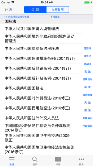 收录300多部常用中华人民共和国法律法规及司法解释等,分类浏览,便捷操作,快速索引定位,全文搜索,书签收藏! 软件特色: 1. 法律法规详细分类,一键查找 2. 全文检索,标题与章节检索 3. 快速索引定位 4. 升级功能后可一键复制相关条款,并发送给指定邮箱 适合法律专业者随身查找使用,比如律师,法律学者,法律专业学生,公务员考试等. 法律大类一览: 国际法、行政及行政诉讼、经济法、民法、民事诉讼及仲裁、商法、司法制度及法职、宪法、刑法、刑事诉讼等.